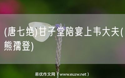 (唐七絕)甘子堂陪宴上韋大夫(熊孺登)由易優(yōu)作文(易優(yōu)悅讀)為大家精心整理發(fā)布,學作文,學閱讀,提升語文閱讀寫作能力,就來易優(yōu)悅讀。作文培訓,閱讀培訓,易優(yōu)悅讀助力每個孩子成為語文學霸。