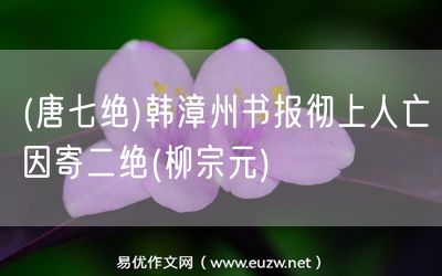 易優(yōu)作文網(wǎng)——(唐七絕)韓漳州書報(bào)徹上人亡因寄二絕(柳宗元)