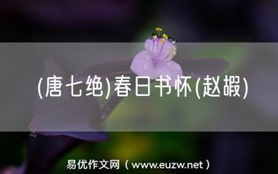 (唐七絕)春日書懷(趙嘏)由易優(yōu)作文(易優(yōu)悅讀)為大家精心整理發(fā)布,學(xué)作文,學(xué)閱讀,提升語文閱讀寫作能力,就來易優(yōu)悅讀。作文培訓(xùn),閱讀培訓(xùn),易優(yōu)悅讀助力每個(gè)孩子成為語文學(xué)霸。