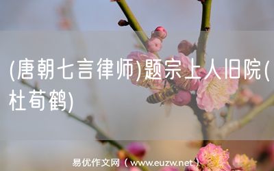 (唐朝七言律師)題宗上人舊院(杜荀鶴)由易優(yōu)作文(易優(yōu)悅讀)為大家精心整理發(fā)布,學(xué)作文,學(xué)閱讀,提升語文閱讀寫作能力,就來易優(yōu)悅讀。作文培訓(xùn),閱讀培訓(xùn),易優(yōu)悅讀助力每個(gè)孩子成為語文學(xué)霸。