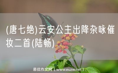 (唐七絕)云安公主出降雜詠催妝二首(陸暢)由易優(yōu)作文(易優(yōu)悅讀)為大家精心整理發(fā)布,學作文,學閱讀,提升語文閱讀寫作能力,就來易優(yōu)悅讀。作文培訓,閱讀培訓,易優(yōu)悅讀助力每個孩子成為語文學霸。
