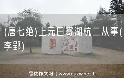 (唐七絕)上元日寄湖杭二從事(李郢)由易優(yōu)作文(易優(yōu)悅讀)為大家精心整理發(fā)布,學作文,學閱讀,提升語文閱讀寫作能力,就來易優(yōu)悅讀。作文培訓,閱讀培訓,易優(yōu)悅讀助力每個孩子成為語文學霸。
