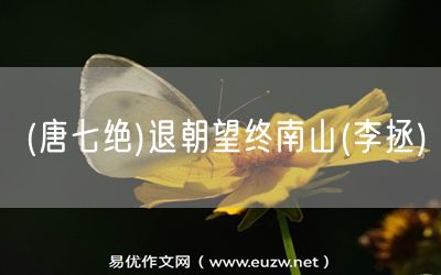 (唐七絕)退朝望終南山(李拯)由易優(yōu)作文(易優(yōu)悅讀)為大家精心整理發(fā)布,學(xué)作文,學(xué)閱讀,提升語文閱讀寫作能力,就來易優(yōu)悅讀。作文培訓(xùn),閱讀培訓(xùn),易優(yōu)悅讀助力每個孩子成為語文學(xué)霸。