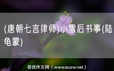 (唐朝七言律師)小雪后書事(陸龜蒙)由易優(yōu)作文(易優(yōu)悅讀)為大家精心整理發(fā)布,學作文,學閱讀,提升語文閱讀寫作能力,就來易優(yōu)悅讀。作文培訓,閱讀培訓,易優(yōu)悅讀助力每個孩子成為語文學霸。