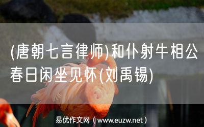 (唐朝七言律師)和仆射牛相公春日閑坐見懷(劉禹錫)由易優(yōu)作文(易優(yōu)悅讀)為大家精心整理發(fā)布,學(xué)作文,學(xué)閱讀,提升語文閱讀寫作能力,就來易優(yōu)悅讀。作文培訓(xùn),閱讀培訓(xùn),易優(yōu)悅讀助力每個孩子成為語文學(xué)霸。