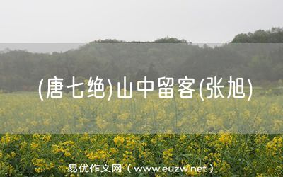 (唐七絕)山中留客(張旭)由易優(yōu)作文(易優(yōu)悅讀)為大家精心整理發(fā)布,學(xué)作文,學(xué)閱讀,提升語(yǔ)文閱讀寫(xiě)作能力,就來(lái)易優(yōu)悅讀。作文培訓(xùn),閱讀培訓(xùn),易優(yōu)悅讀助力每個(gè)孩子成為語(yǔ)文學(xué)霸。