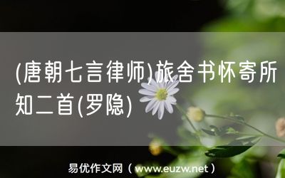 (唐朝七言律師)旅舍書懷寄所知二首(羅隱)由易優(yōu)作文(易優(yōu)悅讀)為大家精心整理發(fā)布,學(xué)作文,學(xué)閱讀,提升語(yǔ)文閱讀寫作能力,就來易優(yōu)悅讀。作文培訓(xùn),閱讀培訓(xùn),易優(yōu)悅讀助力每個(gè)孩子成為語(yǔ)文學(xué)霸。