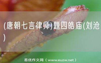 (唐朝七言律師)題四皓廟(劉滄)由易優(yōu)作文(易優(yōu)悅讀)為大家精心整理發(fā)布,學(xué)作文,學(xué)閱讀,提升語文閱讀寫作能力,就來易優(yōu)悅讀。作文培訓(xùn),閱讀培訓(xùn),易優(yōu)悅讀助力每個孩子成為語文學(xué)霸。