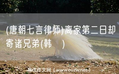 (唐朝七言律師)離家第二日卻寄諸兄弟(韓偓)由易優(yōu)作文(易優(yōu)悅讀)為大家精心整理發(fā)布,學(xué)作文,學(xué)閱讀,提升語(yǔ)文閱讀寫作能力,就來易優(yōu)悅讀。作文培訓(xùn),閱讀培訓(xùn),易優(yōu)悅讀助力每個(gè)孩子成為語(yǔ)文學(xué)霸。