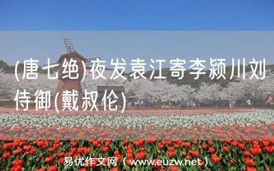 (唐七絕)夜發(fā)袁江寄李潁川劉侍御(戴叔倫)由易優(yōu)作文(易優(yōu)悅讀)為大家精心整理發(fā)布,學(xué)作文,學(xué)閱讀,提升語文閱讀寫作能力,就來易優(yōu)悅讀。作文培訓(xùn),閱讀培訓(xùn),易優(yōu)悅讀助力每個(gè)孩子成為語文學(xué)霸。