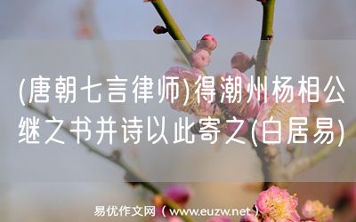 (唐朝七言律師)得潮州楊相公繼之書并詩以此寄之(白居易)由易優(yōu)作文(易優(yōu)悅讀)為大家精心整理發(fā)布,學(xué)作文,學(xué)閱讀,提升語文閱讀寫作能力,就來易優(yōu)悅讀。作文培訓(xùn),閱讀培訓(xùn),易優(yōu)悅讀助力每個(gè)孩子成為語文學(xué)霸。