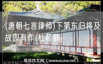 (唐朝七言律師)下第東歸將及故園有作(杜荀鶴)由易優(yōu)作文(易優(yōu)悅讀)為大家精心整理發(fā)布,學作文,學閱讀,提升語文閱讀寫作能力,就來易優(yōu)悅讀。作文培訓,閱讀培訓,易優(yōu)悅讀助力每個孩子成為語文學霸。