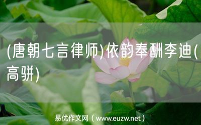 (唐朝七言律師)依韻奉酬李迪(高駢)由易優(yōu)作文(易優(yōu)悅讀)為大家精心整理發(fā)布,學(xué)作文,學(xué)閱讀,提升語文閱讀寫作能力,就來易優(yōu)悅讀。作文培訓(xùn),閱讀培訓(xùn),易優(yōu)悅讀助力每個(gè)孩子成為語文學(xué)霸。