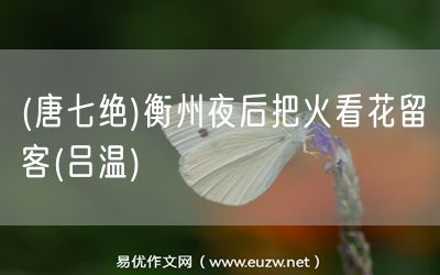 (唐七絕)衡州夜后把火看花留客(呂溫)由易優(yōu)作文(易優(yōu)悅讀)為大家精心整理發(fā)布,學作文,學閱讀,提升語文閱讀寫作能力,就來易優(yōu)悅讀。作文培訓,閱讀培訓,易優(yōu)悅讀助力每個孩子成為語文學霸。