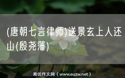 (唐朝七言律師)送景玄上人還山(殷堯藩)由易優(yōu)作文(易優(yōu)悅讀)為大家精心整理發(fā)布,學作文,學閱讀,提升語文閱讀寫作能力,就來易優(yōu)悅讀。作文培訓,閱讀培訓,易優(yōu)悅讀助力每個孩子成為語文學霸。