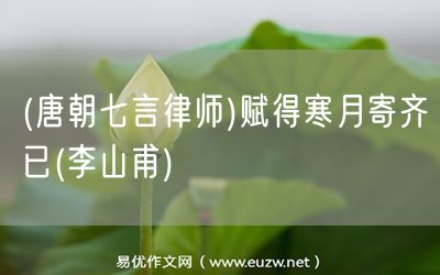(唐朝七言律師)賦得寒月寄齊已(李山甫)由易優(yōu)作文(易優(yōu)悅讀)為大家精心整理發(fā)布,學(xué)作文,學(xué)閱讀,提升語(yǔ)文閱讀寫(xiě)作能力,就來(lái)易優(yōu)悅讀。作文培訓(xùn),閱讀培訓(xùn),易優(yōu)悅讀助力每個(gè)孩子成為語(yǔ)文學(xué)霸。