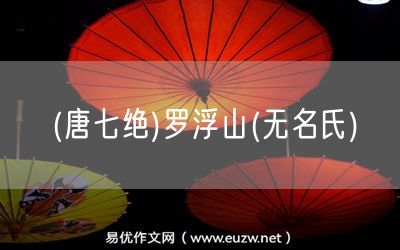 (唐七絕)羅浮山(無名氏)由易優(yōu)作文(易優(yōu)悅讀)為大家精心整理發(fā)布,學作文,學閱讀,提升語文閱讀寫作能力,就來易優(yōu)悅讀。作文培訓,閱讀培訓,易優(yōu)悅讀助力每個孩子成為語文學霸。