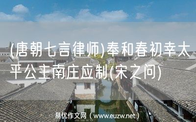 (唐朝七言律師)奉和春初幸太平公主南莊應制(宋之問)由易優(yōu)作文(易優(yōu)悅讀)為大家精心整理發(fā)布,學作文,學閱讀,提升語文閱讀寫作能力,就來易優(yōu)悅讀。作文培訓,閱讀培訓,易優(yōu)悅讀助力每個孩子成為語文學霸。