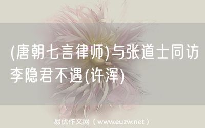 (唐朝七言律師)與張道士同訪李隱君不遇(許渾)由易優(yōu)作文(易優(yōu)悅讀)為大家精心整理發(fā)布,學(xué)作文,學(xué)閱讀,提升語文閱讀寫作能力,就來易優(yōu)悅讀。作文培訓(xùn),閱讀培訓(xùn),易優(yōu)悅讀助力每個(gè)孩子成為語文學(xué)霸。