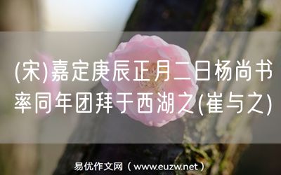 (宋)嘉定庚辰正月二日楊尚書率同年團(tuán)拜于西湖之(崔與之)由易優(yōu)作文(易優(yōu)悅讀)為大家精心整理發(fā)布,學(xué)作文,學(xué)閱讀,提升語(yǔ)文閱讀寫作能力,就來(lái)易優(yōu)悅讀。作文培訓(xùn),閱讀培訓(xùn),易優(yōu)悅讀助力每個(gè)孩子成為語(yǔ)文學(xué)霸。