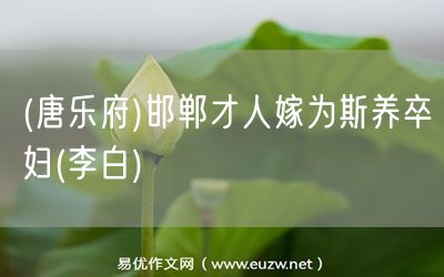 易優(yōu)作文網(wǎng)——(唐樂府)邯鄲才人嫁為斯養(yǎng)卒婦(李白)