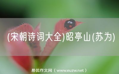 (宋朝詩詞大全)昭亭山(蘇為)由易優(yōu)作文(易優(yōu)悅讀)為大家精心整理發(fā)布,學(xué)作文,學(xué)閱讀,提升語文閱讀寫作能力,就來易優(yōu)悅讀。作文培訓(xùn),閱讀培訓(xùn),易優(yōu)悅讀助力每個孩子成為語文學(xué)霸。