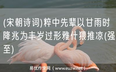 (宋朝詩詞)粹中先輩以甘雨時降兆為豐歲過形雅什猥推涼(強至)由易優(yōu)作文(易優(yōu)悅讀)為大家精心整理發(fā)布,學作文,學閱讀,提升語文閱讀寫作能力,就來易優(yōu)悅讀。作文培訓,閱讀培訓,易優(yōu)悅讀助力每個孩子成為語文學霸。