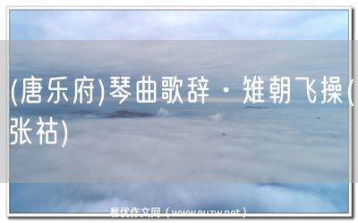 易優(yōu)作文網(wǎng)——(唐樂府)琴曲歌辭·雉朝飛操(張祜)