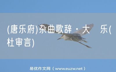 易優(yōu)作文網(wǎng)——(唐樂府)雜曲歌辭·大酺樂(杜審言)