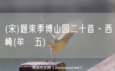 易優(yōu)作文網(wǎng)——(宋)題束季博山園二十首·西崦(牟巘五)