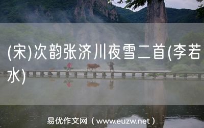 (宋)次韻張濟川夜雪二首(李若水)由易優(yōu)作文(易優(yōu)悅讀)為大家精心整理發(fā)布,學(xué)作文,學(xué)閱讀,提升語文閱讀寫作能力,就來易優(yōu)悅讀。作文培訓(xùn),閱讀培訓(xùn),易優(yōu)悅讀助力每個孩子成為語文學(xué)霸。