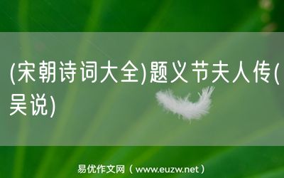 (宋朝詩詞大全)題義節(jié)夫人傳(吳說)由易優(yōu)作文(易優(yōu)悅讀)為大家精心整理發(fā)布,學(xué)作文,學(xué)閱讀,提升語文閱讀寫作能力,就來易優(yōu)悅讀。作文培訓(xùn),閱讀培訓(xùn),易優(yōu)悅讀助力每個孩子成為語文學(xué)霸。