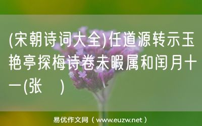 (宋朝詩詞大全)任道源轉(zhuǎn)示玉艷亭探梅詩卷未暇屬和閏月十一(張镃)由易優(yōu)作文(易優(yōu)悅讀)為大家精心整理發(fā)布,學作文,學閱讀,提升語文閱讀寫作能力,就來易優(yōu)悅讀。作文培訓,閱讀培訓,易優(yōu)悅讀助力每個孩子成為語文學霸。