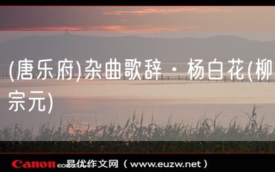(唐樂府)雜曲歌辭·楊白花(柳宗元)由易優(yōu)作文(易優(yōu)悅讀)為大家精心整理發(fā)布,學(xué)作文,學(xué)閱讀,提升語(yǔ)文閱讀寫作能力,就來(lái)易優(yōu)悅讀。作文培訓(xùn),閱讀培訓(xùn),易優(yōu)悅讀助力每個(gè)孩子成為語(yǔ)文學(xué)霸。