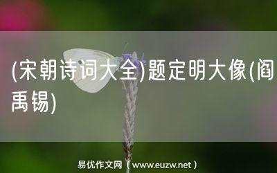 (宋朝詩詞大全)題定明大像(閻禹錫)由易優(yōu)作文(易優(yōu)悅讀)為大家精心整理發(fā)布,學作文,學閱讀,提升語文閱讀寫作能力,就來易優(yōu)悅讀。作文培訓,閱讀培訓,易優(yōu)悅讀助力每個孩子成為語文學霸。 蘇州易優(yōu)吳老師中考語文提分班(TEL:181-1815-9898)有趣、有用、提分快