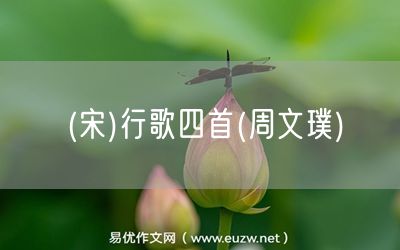 (宋)行歌四首(周文璞)由易優(yōu)作文(易優(yōu)悅讀)為大家精心整理發(fā)布,學(xué)作文,學(xué)閱讀,提升語文閱讀寫作能力,就來易優(yōu)悅讀。作文培訓(xùn),閱讀培訓(xùn),易優(yōu)悅讀助力每個孩子成為語文學(xué)霸。