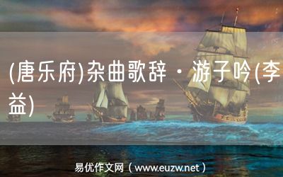 (唐樂府)雜曲歌辭·游子吟(李益)由易優(yōu)作文(易優(yōu)悅讀)為大家精心整理發(fā)布,學作文,學閱讀,提升語文閱讀寫作能力,就來易優(yōu)悅讀。作文培訓,閱讀培訓,易優(yōu)悅讀助力每個孩子成為語文學霸。
