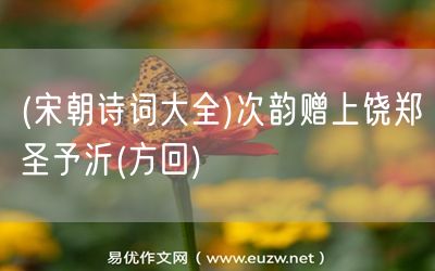 (宋朝詩詞大全)次韻贈上饒鄭圣予沂(方回)由易優(yōu)作文(易優(yōu)悅讀)為大家精心整理發(fā)布,學(xué)作文,學(xué)閱讀,提升語文閱讀寫作能力,就來易優(yōu)悅讀。作文培訓(xùn),閱讀培訓(xùn),易優(yōu)悅讀助力每個孩子成為語文學(xué)霸。