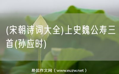 (宋朝詩詞大全)上史魏公壽三首(孫應(yīng)時(shí))由易優(yōu)作文(易優(yōu)悅讀)為大家精心整理發(fā)布,學(xué)作文,學(xué)閱讀,提升語文閱讀寫作能力,就來易優(yōu)悅讀。作文培訓(xùn),閱讀培訓(xùn),易優(yōu)悅讀助力每個(gè)孩子成為語文學(xué)霸。