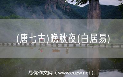 (唐七古)晚秋夜(白居易)由易優(yōu)作文(易優(yōu)悅讀)為大家精心整理發(fā)布,學(xué)作文,學(xué)閱讀,提升語文閱讀寫作能力,就來易優(yōu)悅讀。作文培訓(xùn),閱讀培訓(xùn),易優(yōu)悅讀助力每個(gè)孩子成為語文學(xué)霸。