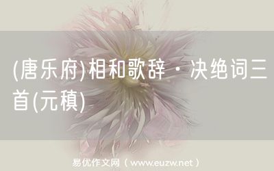 (唐樂府)相和歌辭·決絕詞三首(元稹)由易優(yōu)作文(易優(yōu)悅讀)為大家精心整理發(fā)布,學(xué)作文,學(xué)閱讀,提升語文閱讀寫作能力,就來易優(yōu)悅讀。作文培訓(xùn),閱讀培訓(xùn),易優(yōu)悅讀助力每個(gè)孩子成為語文學(xué)霸。