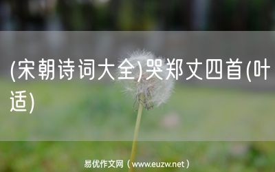 (宋朝詩(shī)詞大全)哭鄭丈四首(葉適)由易優(yōu)作文(易優(yōu)悅讀)為大家精心整理發(fā)布,學(xué)作文,學(xué)閱讀,提升語(yǔ)文閱讀寫作能力,就來易優(yōu)悅讀。作文培訓(xùn),閱讀培訓(xùn),易優(yōu)悅讀助力每個(gè)孩子成為語(yǔ)文學(xué)霸。