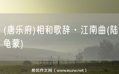 (唐樂府)相和歌辭·江南曲(陸龜蒙)由易優(yōu)作文(易優(yōu)悅讀)為大家精心整理發(fā)布,學作文,學閱讀,提升語文閱讀寫作能力,就來易優(yōu)悅讀。作文培訓,閱讀培訓,易優(yōu)悅讀助力每個孩子成為語文學霸。