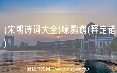 (宋朝詩詞大全)詠鸚鵡(釋定諸)由易優(yōu)作文(易優(yōu)悅讀)為大家精心整理發(fā)布,學(xué)作文,學(xué)閱讀,提升語文閱讀寫作能力,就來易優(yōu)悅讀。作文培訓(xùn),閱讀培訓(xùn),易優(yōu)悅讀助力每個(gè)孩子成為語文學(xué)霸。