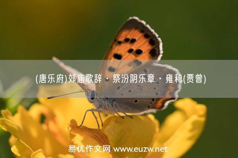 (唐樂府)郊廟歌辭·祭汾陰樂章·雍和(賈曾)由易優(yōu)作文(易優(yōu)悅讀)為大家精心整理發(fā)布,學作文,學閱讀,提升語文閱讀寫作能力,就來易優(yōu)悅讀。
