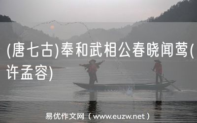 (唐七古)奉和武相公春曉聞鶯(許孟容)由易優(yōu)作文(易優(yōu)悅讀)為大家精心整理發(fā)布,學(xué)作文,學(xué)閱讀,提升語文閱讀寫作能力,就來易優(yōu)悅讀。作文培訓(xùn),閱讀培訓(xùn),易優(yōu)悅讀助力每個孩子成為語文學(xué)霸。