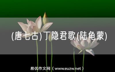(唐七古)丁隱君歌(陸龜蒙)由易優(yōu)作文(易優(yōu)悅讀)為大家精心整理發(fā)布,學(xué)作文,學(xué)閱讀,提升語(yǔ)文閱讀寫(xiě)作能力,就來(lái)易優(yōu)悅讀。作文培訓(xùn),閱讀培訓(xùn),易優(yōu)悅讀助力每個(gè)孩子成為語(yǔ)文學(xué)霸。
