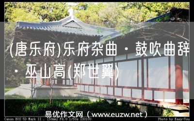 (唐樂府)樂府雜曲·鼓吹曲辭·巫山高(鄭世翼)由易優(yōu)作文(易優(yōu)悅讀)為大家精心整理發(fā)布,學(xué)作文,學(xué)閱讀,提升語文閱讀寫作能力,就來易優(yōu)悅讀。作文培訓(xùn),閱讀培訓(xùn),易優(yōu)悅讀助力每個(gè)孩子成為語文學(xué)霸。