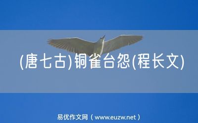 (唐七古)銅雀臺怨(程長文)由易優(yōu)作文(易優(yōu)悅讀)為大家精心整理發(fā)布,學作文,學閱讀,提升語文閱讀寫作能力,就來易優(yōu)悅讀。作文培訓,閱讀培訓,易優(yōu)悅讀助力每個孩子成為語文學霸。