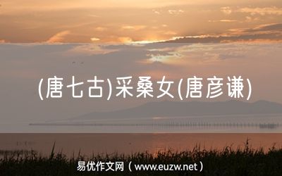 (唐七古)采桑女(唐彥謙)由易優(yōu)作文(易優(yōu)悅讀)為大家精心整理發(fā)布,學(xué)作文,學(xué)閱讀,提升語(yǔ)文閱讀寫作能力,就來(lái)易優(yōu)悅讀。作文培訓(xùn),閱讀培訓(xùn),易優(yōu)悅讀助力每個(gè)孩子成為語(yǔ)文學(xué)霸。